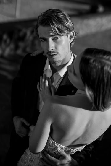 A moving, cinematic approach designed to feel like frames pulled from a romance film.